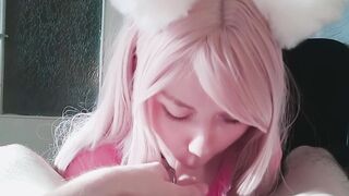 pet the catgirl and fed her with cum