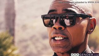 Curved big cock tranny Lena Moon fucks black guy after perfect solo action