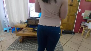 Stepsis asks stepbro if her ass is big, he can't answer unless he has a feel and a good look, but stepsis tells him if he shows her his she'll show him hers...ends in a hot dripping POV creampie!