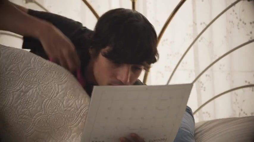 Ricky (Spanish) is masturbating, with the stimulating aid of looking at a calendar with sexy photos of a blonde, as well as a pair of pink panties he sniffs, when his stepmom (Sarah Taylor) walks into his bedroom, embarrassing them both. She wants to have a little talk, but Ricky's huge boner sticking out in his shorts is a distraction.
