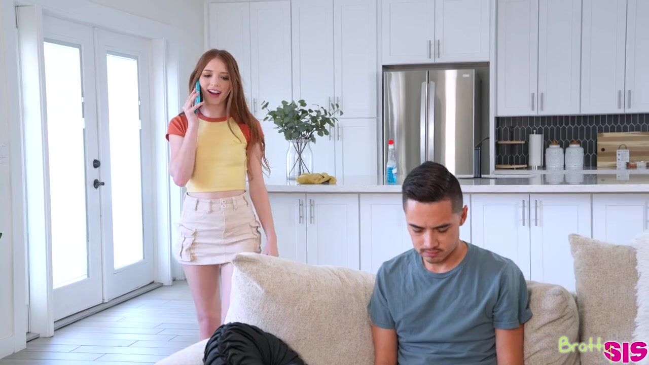 Myra Moans is in the midst of cleaning up her stepbrother's cum. Her phone rings as Juan Loco is sitting right there, and she tells her friend all about the big cum shots Juan has sprayed all over the house. Juan is offended that Myra has told her friend his secret, so he storms out of the room.Later, Myra comes to Juan's room and tells him to start spraying his cum in her mouth instead of random spots around the house. Pulling the covers down, she sees that Juan is already nice and hard. A nice blowjob from his redheaded stepsister gets him even hotter and harder.Crawling on top of Juan, Myra sinks down until she has taken in every inch of his hardon and can bounce on Juan in cowgirl. She gives him a second taste of her lithe nubile body in reverse cowgirl. Getting on her back, Myra lets Juan take her as hard as he wants. She gives him one last go in doggy and then gets on her knees to take the facial Juan promised her with an open mouth and a big smile.